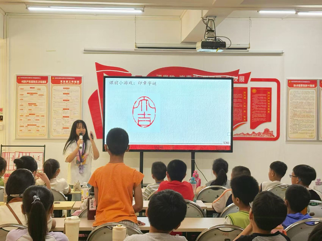 此次非遗系列课程,通过“印记流芳”的沉静雕琢、“广府醒狮舞”的动感协作、“我的扇子会唱戏”的绚烂描绘,成功地将“印章镌刻技艺”、“广府醒狮”、“潮汕英歌舞”这三项珍贵的非物质文化遗产,转化为青少年可观、可感、可参与、可创造的生动课堂。课程超越了简单的技艺展示,在知识传授中深植文化自信,在动手实践中磨砺专注品格,在团队协作中培育认同情怀。非遗传承,核心在人,希望在青少年。华南师范大学快乐星球突击队将持续深耕“非遗进校园”活动,以更多元、更深入、更富创造性的形式,让古老技艺在童心中焕发新生机,让文化自信的种子在体验中生根发芽,确保中华优秀传统文化的薪火永续相传,为夯实民族复兴的文化根基贡献坚实力量。