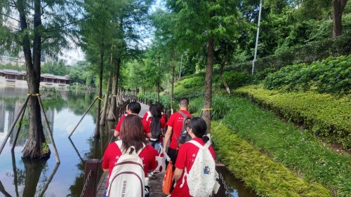 在走访学习中,该团队了解到用了彩云湖公园花费了数十年时间,才通过截污管网建设、生态浮岛种植、底泥清淤等工程,让水质从劣ⅴ类提升至ⅲ类。在与工作人员交谈中,一位老爷爷的话更让队员们深思:“以前总觉得环保是政府的事,现在才明白,捡起一片垃圾、节约一滴水,都是在给湿地‘加分’。”