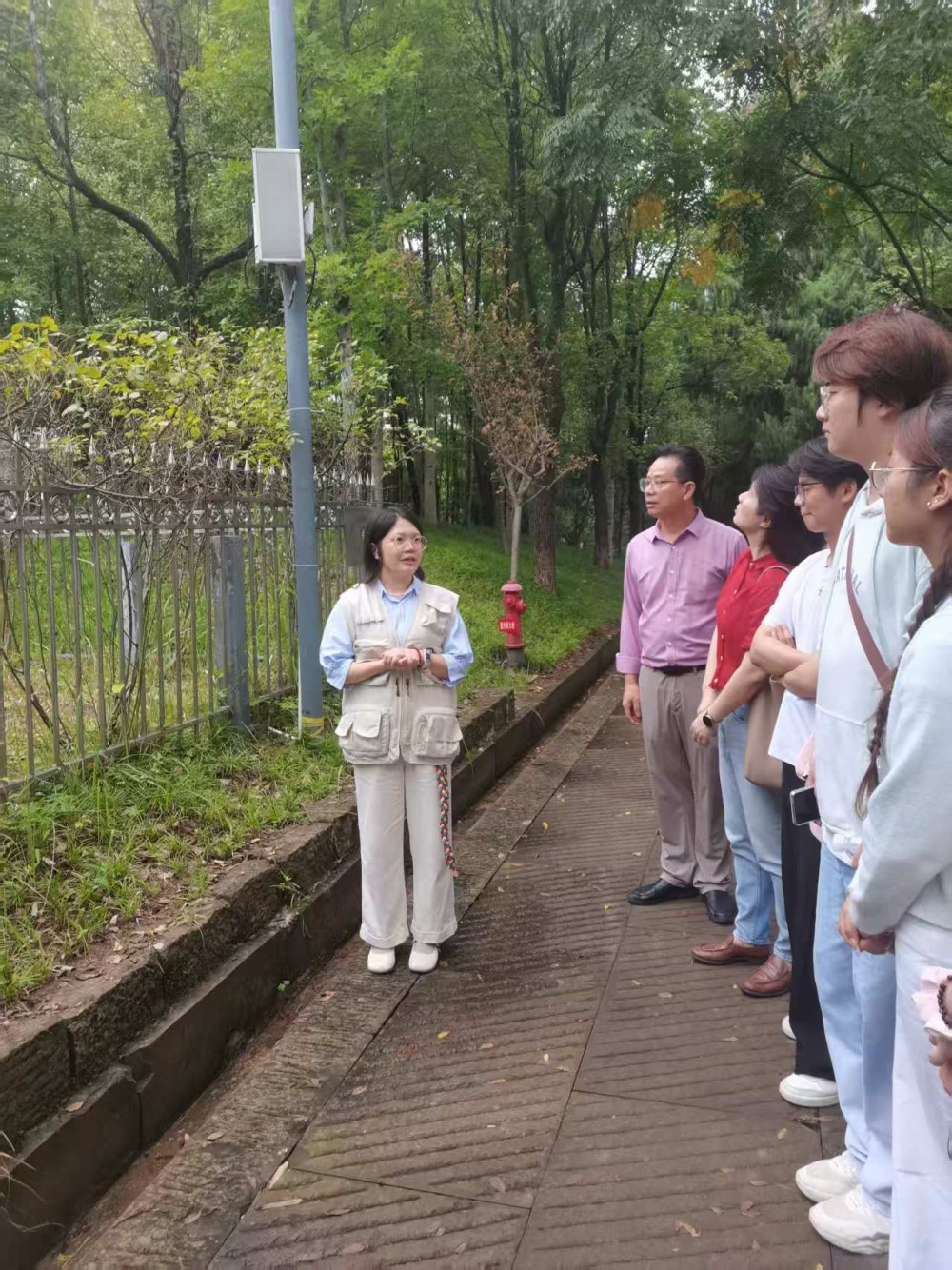 文博馆员、监测站负责人冯雪梅讲解微环境气象监测站运行过程及作用